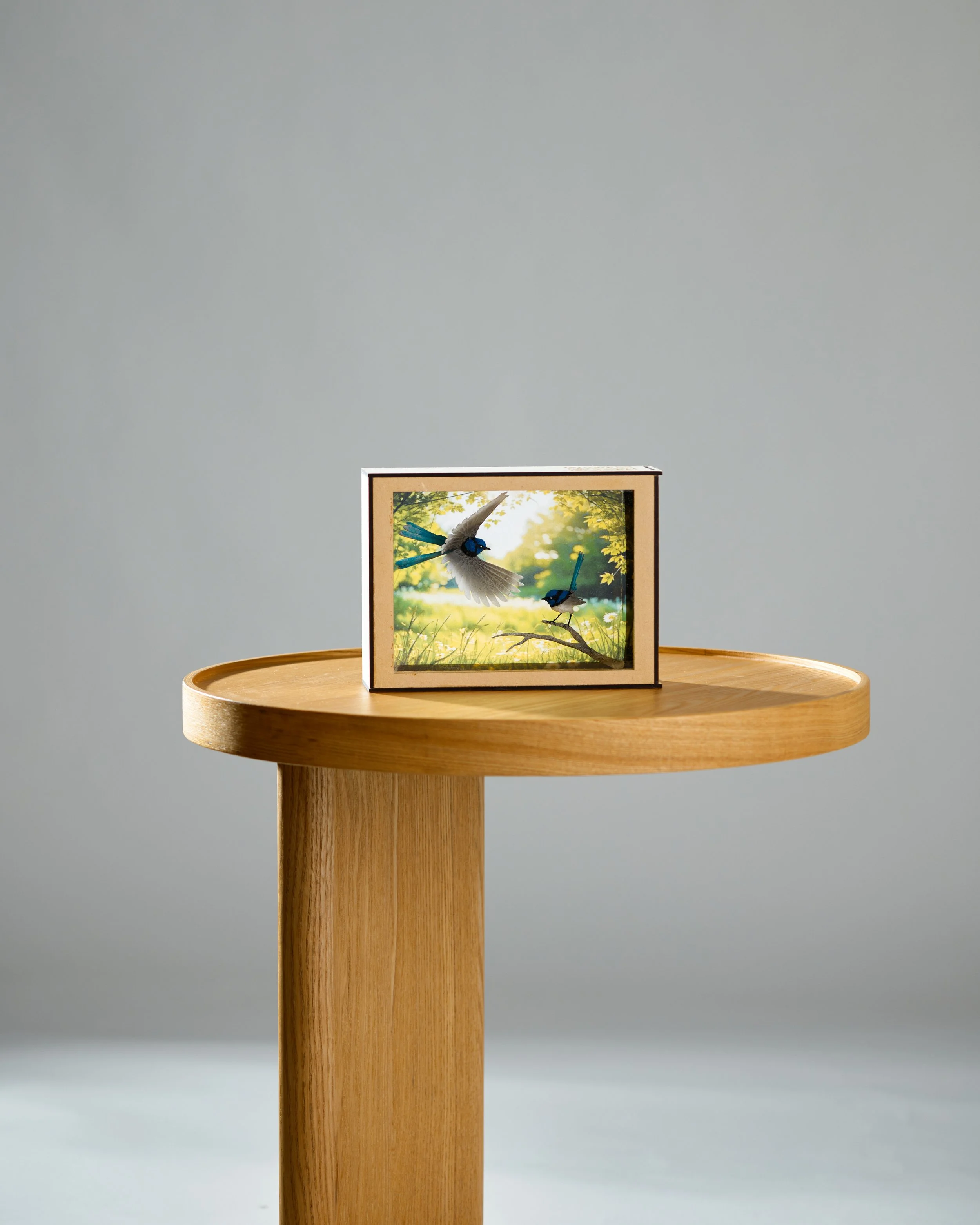 Sunlit Australia Sculpture Displays Three Blue Wrens Blue Wrens Eastern Grey Kangaroo Australian Pelicans Kookaburra Superb Lyrebird Tasmanian Tiger Monarch Butterfly